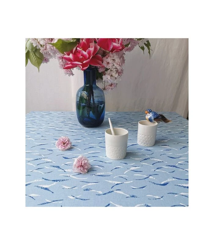 Veeg je tafelkleed na elke maaltijd schoon met een vochtige doek. U kunt ook azijn of bleekmiddel gebruiken om hardnekkige vlekken te verwijderen. In de machine wassen is af en toe toegestaan op 30°C zonder conditioner en zonder centrifugeren. Strijken is verplicht aan de achterkant (katoenkant) of aan de rechterkant met een persdoek of een vochtige theedoek.