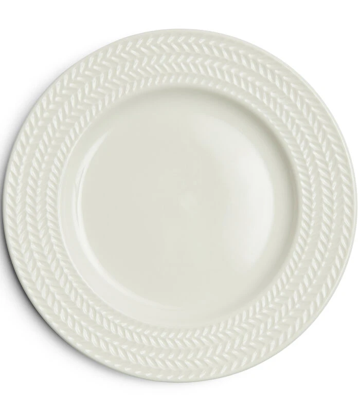 Lekker wakker worden met je cracker of boterham op een ontbijtbordje van de RM Bellecôte serviesserie. Mooi versierd met een visgraat randje, ingewerkt in het keramiek. Rustig decor, voor optimaal genieten van je voedsel.