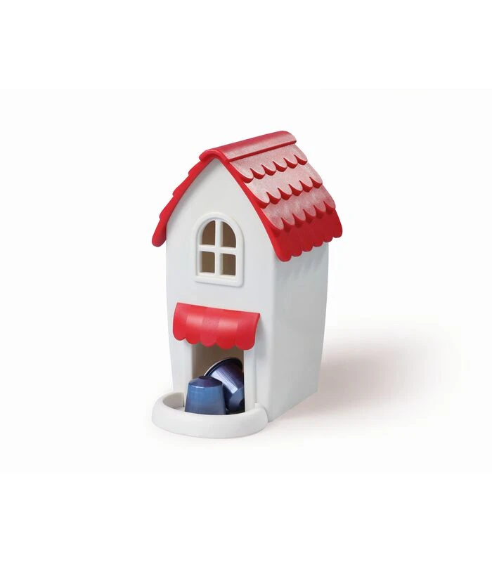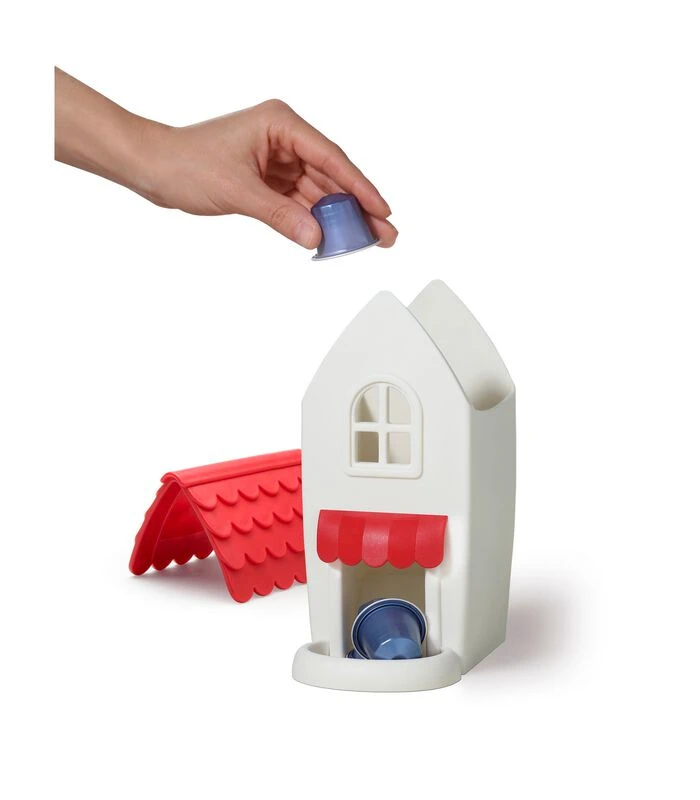 De koffiecapsule dispenser van Ototo is niet alleen erg handig maar is ook nog eens vormgegeven als je eigen koffiezaak. Haal het dak van de Coffee Shop, vul hem met je favoriete capsules en geniet snel en leuk van een lekker bakje koffie.