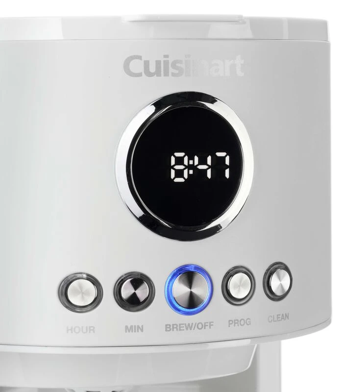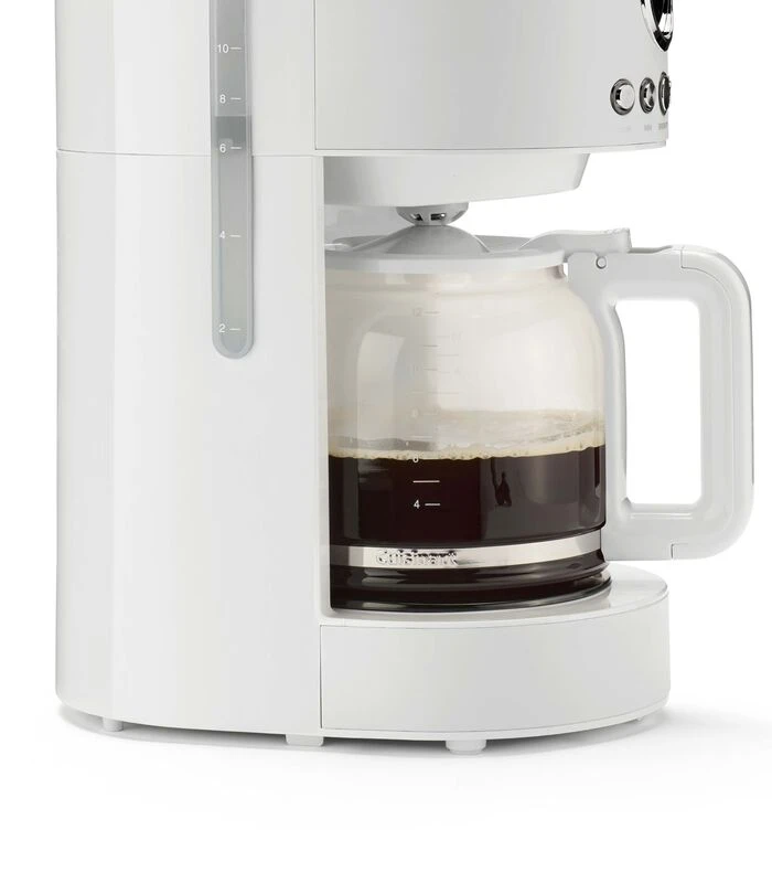 Dit eigentijdse Cuisinart koffiezetapparaat in mat warm witte met gepolijste details, zal prachtig staan in je keuken.