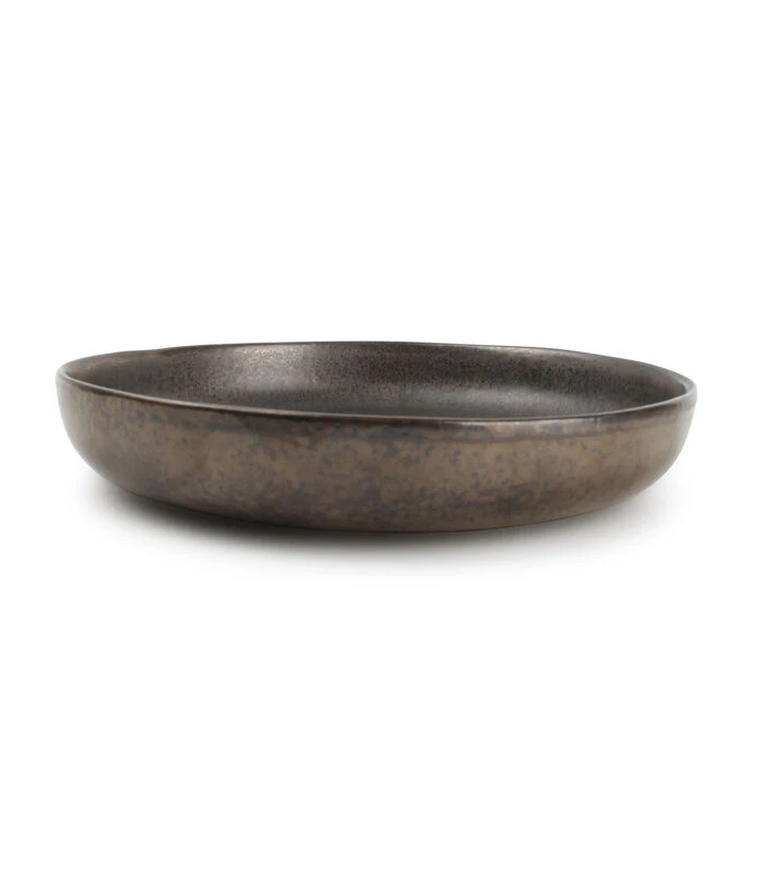 Studio Urban vertegenwoordigt een duurzame en robuuste collectie serviesgoed. Ongeacht wat er in de items geserveerd wordt, u zal het op prijs stellen. En zelfs leeg ziet het er mooi uit. Krachtige Zwarte tinten worden afgewisseld met een toets van metallic Goud, waardoor de collectie een luxueuze uitstraling krijgt. Bovendien werden de items afgewerkt met een reactieve glazuur waardoor elk bord een unieke kleurenmix heeft en er lichtjes anders uitziet. Studio Urban fungeert als dé tool bij uitstek om uw dagelijkse eetervaring specialer te maken. OPMERKING: kleur kan afwijken van de foto door de unieke kleurvariaties in de reactieve glazuur.