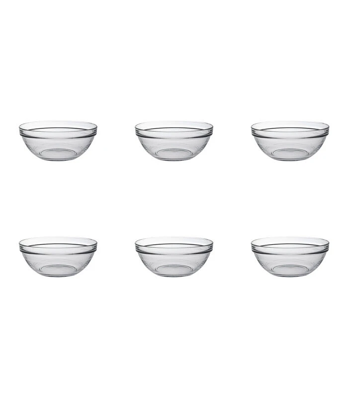 De Lys schalen van Duralex zijn een waardevolle toevoeging in iedere keuken en op de tafel. Deze schalen, gemaakt van gehard glas zijn perfect voor het mixen, bereiden en serveren van de lekkerste gerechten. Door het geharde glas zijn deze schalen niet alleen shockbestendig en bestand tegen thermische schommelingen, ze kunnen daarnaast ook prima gebruikt worden in de magnetron en vriezer. Daarnaast hebben de schalen een handige stapelrand, waardoor ze goed stapelbaar zijn en ze ruimte besparen in je kast. En na gebruik kunnen deze schalen in de vaatwasmachine gereinigd worden. De set bestaat uit 6 transparante schalen met een diameter van 17 cm en een inhoudsmaat van 97 cl.
