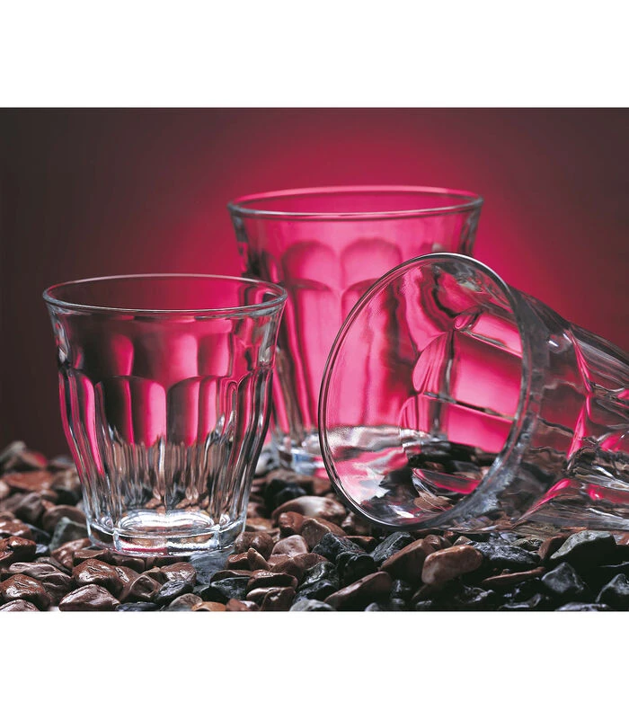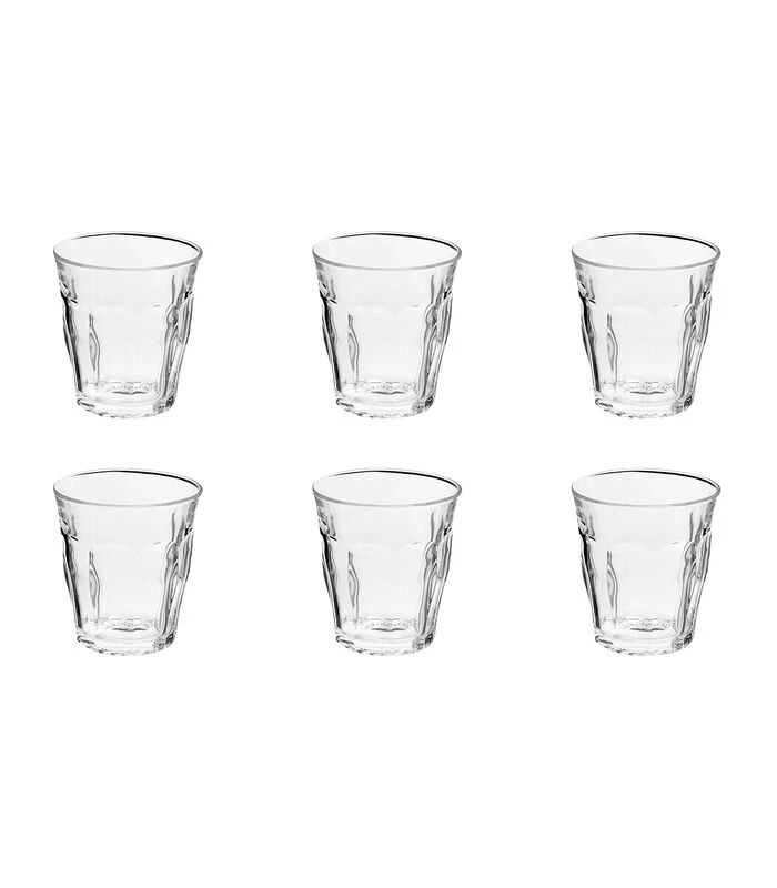 De transparante Picardie glazen zijn Duralex zijn al bekende gasten in veel huishoudens en in de horeca. Zo ook deze waterglazen. De glazen hebben een prachtig stijlvol design en zijn erg multifunctioneel. Deze waterglazen kun je gebruiken voor het serveren van koude– en warme toepassingen. De glazen zijn namelijk gemaakt van gehard glas en zijn schokbestendig en bestand tegen thermische schommelingen. Daarnaast zijn deze waterglazen stapelbaar en nemen ze ook nog eens weinig ruimte in. Na gebruik kunnen deze glazen eenvoudig gereinigd worden in de vaatwasmachine. Deze set bestaat uit 6 transparante waterglazen met een inhoudsmaat van 31 cl.