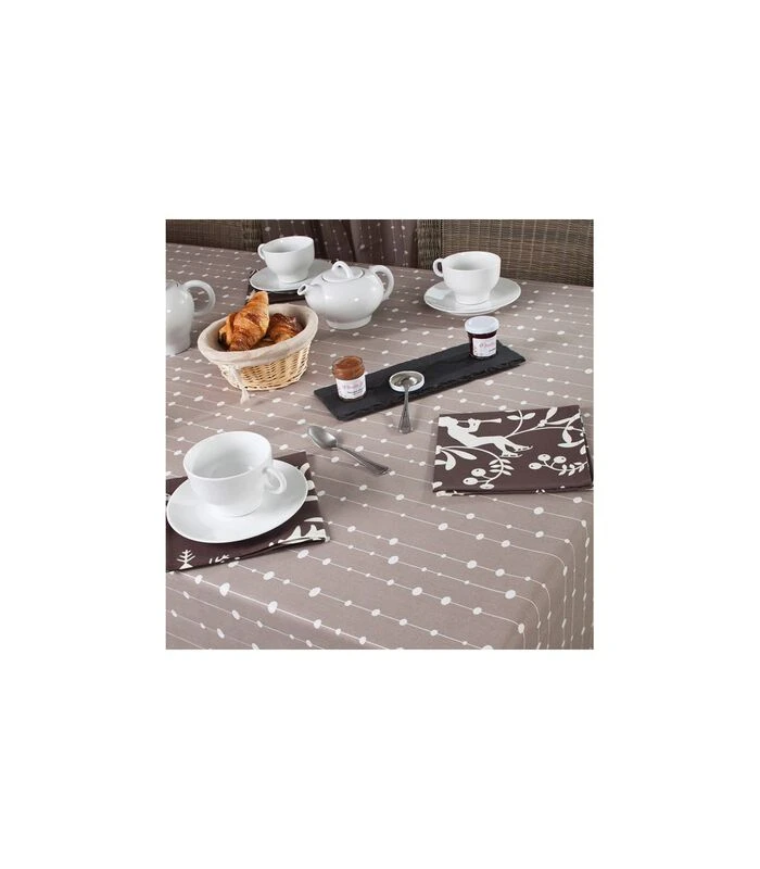 Veeg je tafelkleed na elke maaltijd schoon met een vochtige doek. U kunt ook azijn of bleekmiddel gebruiken om hardnekkige vlekken te verwijderen. In de machine wassen is af en toe toegestaan ​​op 30°C zonder conditioner en zonder centrifugeren. Strijken is verplicht aan de achterkant (katoenkant) of aan de rechterkant met een persdoek of een vochtige theedoek.