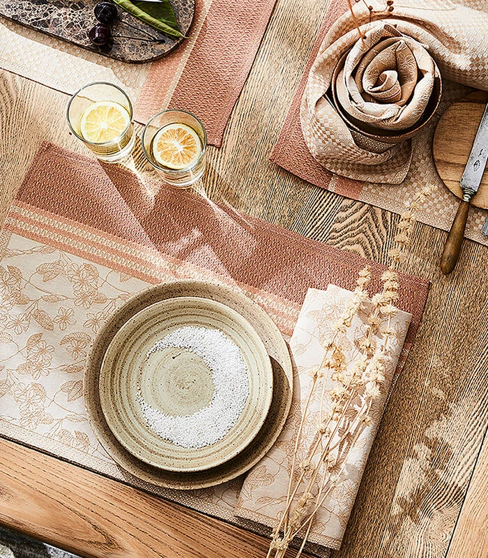 Ontdek onze praktische en esthetische Essential–collectie! Placemats, servetten en dienbladen zijn er om een tijdloze en moderne stijl aan uw tafeldecoratie te geven.