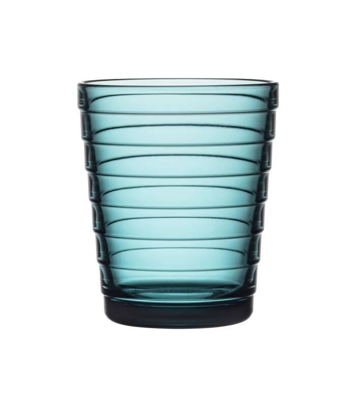 Het geperste glaswerk maakte veel indruk toen designlegende Aino Aalto hem voor de eerste keer introduceerde in 1932. Inmiddels is het glas een tijdloze klassieker in Fins design. Het Finse glaswerk is geïnspireerd op de kringen in het water en is ruimtebesparend, stapelbaar en veelzijdig. Geschikt voor de vaatwasser en ideaal voor dagelijks gebruik. De glasset is nu ook verkrijgbaar in zeeblauw.