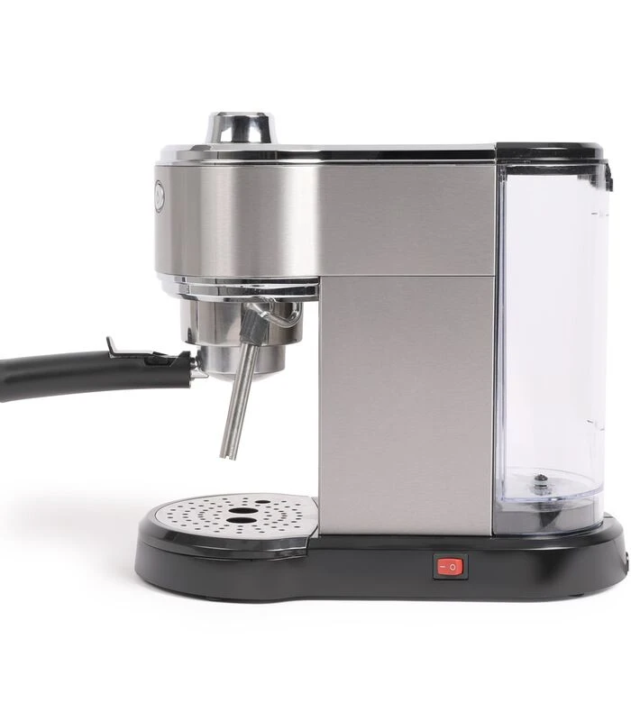 – 15 bars – Uitneembaar reservoir 1 L – Percolator voor gemalen koffie en papieren ESE–pads – 3 schakelaars: 1 kop ? 2 koppen ? aan/uit stoompijpje – 3 roestvrijstalen filters: 1 kop, 2 koppen en voor ESE–pads – Kopjesopwarmplaat – Roestvrijstalen stoompijpje – Uitneembare geperforeerde plaat – Maatlepel met aanstamper inbegrepen