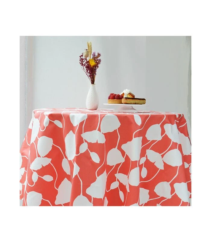 Met Koraal Klaprozen Gecoat Tafelkleed
