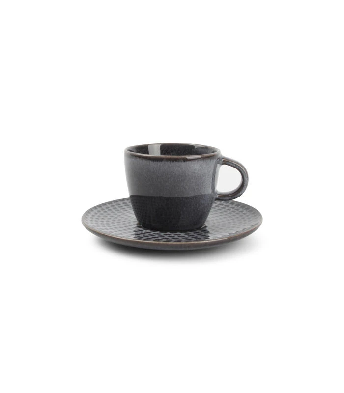Mokkakop 9cl En Schotel Grijs Stitch – (x4)