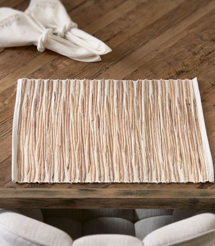 De Nusa Dua–placemat rol je eenvoudig op en de placemat is daardoor makkelijk en compact op te bergen. De flexibele strengen bananenblad waarvan de placemat is gemaakt, worden bij elkaar gehouden door stevig wit katoen.