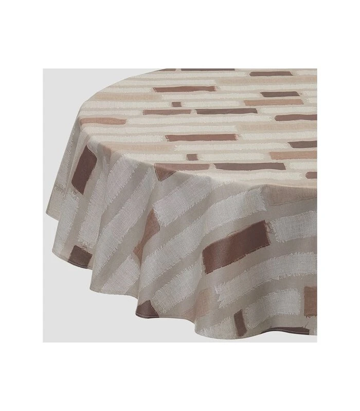 Rond Of Ovaal Gecoat Tafelkleed Stripe Patch Taupe