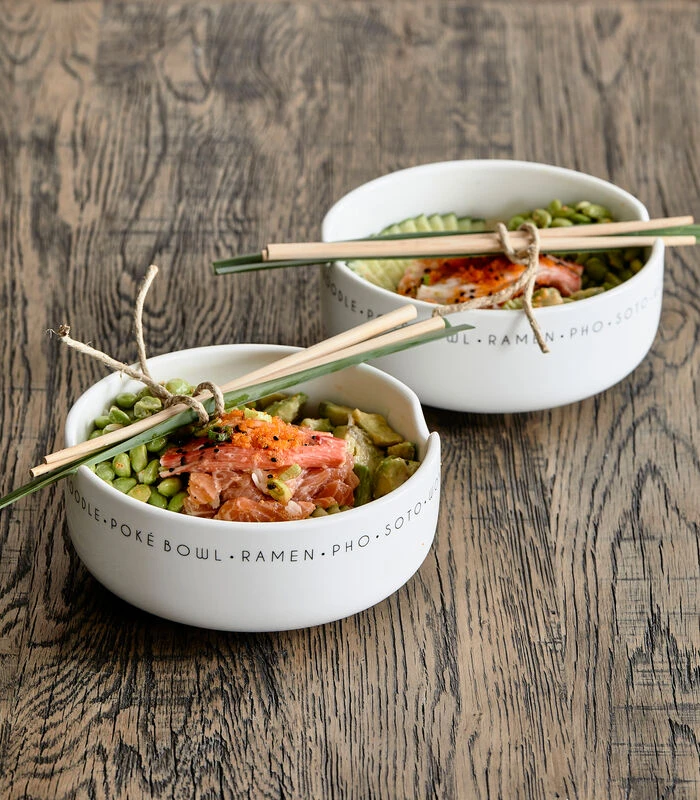 Poké is de trend, en met de RM Loves Soul Food Poké Bowl ben je er klaar voor. Twee uitsparingen in de rand voor je eetstokjes, en rondom geprint met allerlei ingrediënten die je voor dit traditionele gerecht uit Hawaï kunt gebruiken. Inclusief eetstokjes.