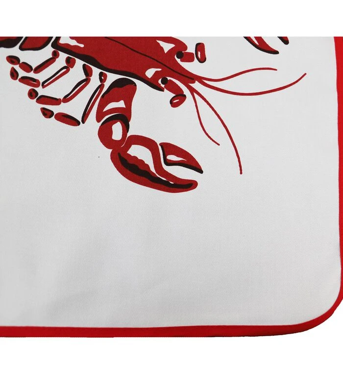 Zeer mooie visuele weergave op deze 100% dichte katoenen slab, ontworpen voor intensief gebruik. Het wordt zowel door particulieren als door cateringbedrijven gebruikt. Kenmerken van de HOMARD slab Afmetingen: hoogte 60cm, breedte 50cm. Kreeft bijpassende bordeaux randafwerking. Verkocht in verpakkingen van 2. Bedrukt kreeftenpatroon. Striksluiting. Samenstelling: 100% katoen. Machinewasbaar op 40°C Gemaakt in de E.U. Merk Linandelle. “Lees meer: Dit product met het label STANDARD 100 van OEKO–TEX®–certificaat n° CQ 1102/4 IFTH volgt een gecertificeerd en gecontroleerd fabricageproces, met respect voor uw huid. De STANDARD 100 van OEKO–TEX® is het eerste label dat beantwoordt aan de behoeften van de consument op het gebied van de menselijke ecologie. Het garandeert dat gecertificeerde artikelen vrij zijn van stoffen die schadelijk zijn of een gezondheidsrisico kunnen inhouden”.