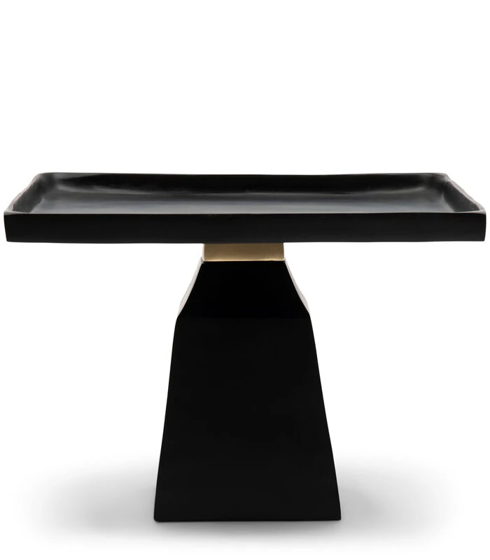 Sober en stijlvol, dat is The Mark Cake Stand. Van zwart gepoedercoat aluminium, met onder het blad een goudkleurige rand ter afwerking. Op deze taartschaal kun je behalve een taart ook veel ander lekkers kwijt, zoet of hartig. Deze taartschaal past bij elk servies, juist door zijn stijlvoll ontwerp.