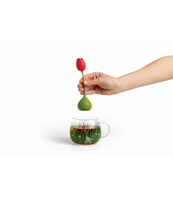 De tulpvormige thee infuser van Ototo helpt je om helemaal te ontspannen. Plant de tulp in het leuke, bijgeleverde kopje om je omgeving van een heerlijke geur en smaak te voorzien, zodat je lekker kan genieten van een vers gezet kopje thee!