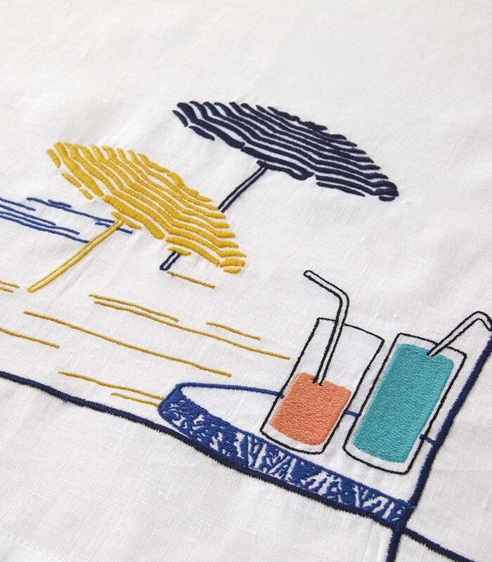 Dankzij de samenstelling van 100% linnen biedt de Azur theedoek een grote weerstand, een uitstekende absorptie en een snelle droging. Het mooie borduurpatroon zorgt voor een zomers tintje.