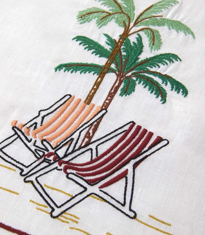 Dankzij de samenstelling van 100% linnen biedt de Palm theedoek een grote weerstand, een uitstekende absorptie en een snelle droging. Het mooie borduurpatroon zorgt voor een zomers tintje.