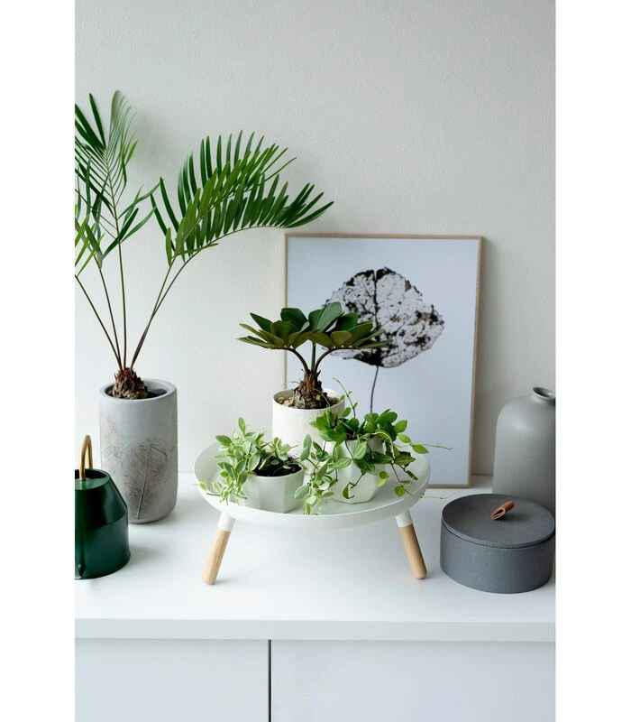 Deze tray met poten van Yamazaki toont een mooie combinatie van natuurlijk hout en expressief staal. Je kunt hem op de vloer plaatsen, zodat je er drankjes en snacks op kunt plaatsen maar het ziet er ook goed uit als dienblad om ??sfeer in je kamer toe te voegen. Het dienblad is erg leuk om te decoreren met meerdere plantpotjes, decoraties of zelfs als fruitschaal.