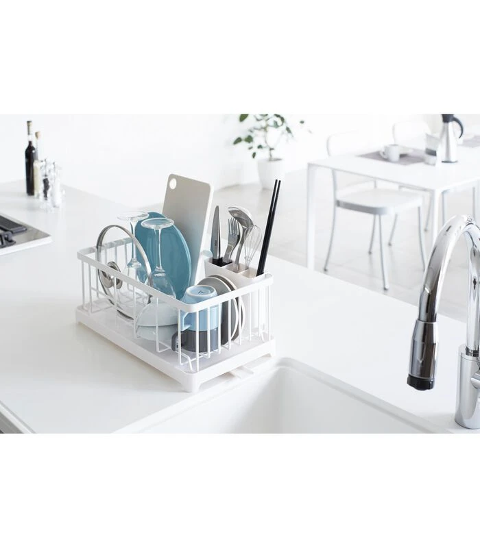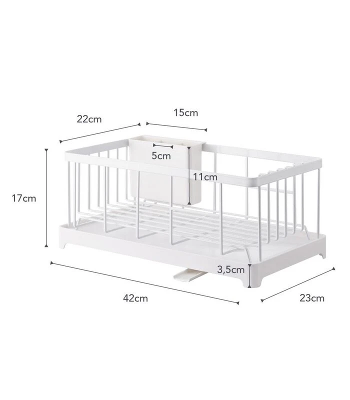 Dit eenvoudige afdruiprek van Yamazaki past naast elke wasbak en voert het overbodige water zelf af. In het rek past ieder soort borden, kommen, glazen of andere gebruiksvoorwerpen. Het rek heeft een klein afvoerpijpje op de bodem die het overbodige water rechtstreeks in de gootsteen afvoert. Gemaakt van staal en ontworpen in Japan.